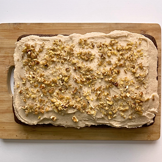 This traybake turned out super delicious! I love a fluffy cake, and not a big fan of stoge (although it has its place). These are fluffy and strong in flavour and the coffee and cardamom go together so well and the walnuts are crunchy. I had to make a vegan buttermilk using lemon and oat milk and I substituted the cream cheese icing for a cinnamon butter cream. I like eating cake for breakfast sometimes (teehee) and this is a great cake-for-breakfast cake and I’m excited to wake up to it tomorrow.